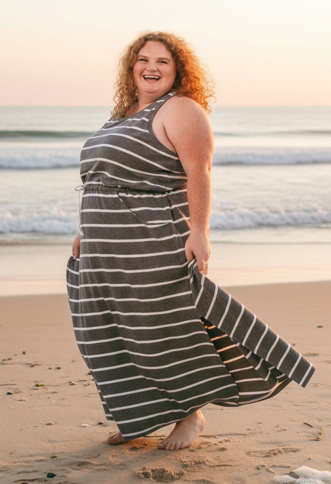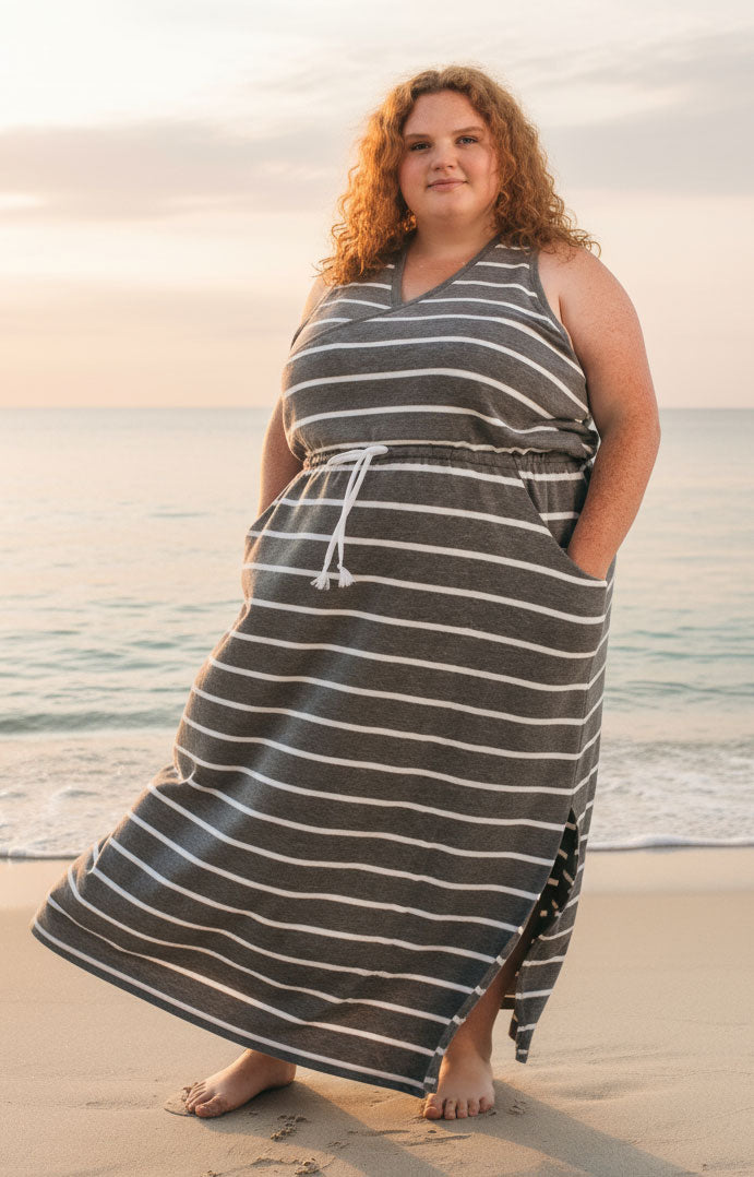 When we think of comfort, we think of the Helen Drawstring Dress! A wear any-time staple, the Helen features a drawstring waist to add a flattering curve to your silhouette. Add a side split hem and pockets to make the Helen your own!