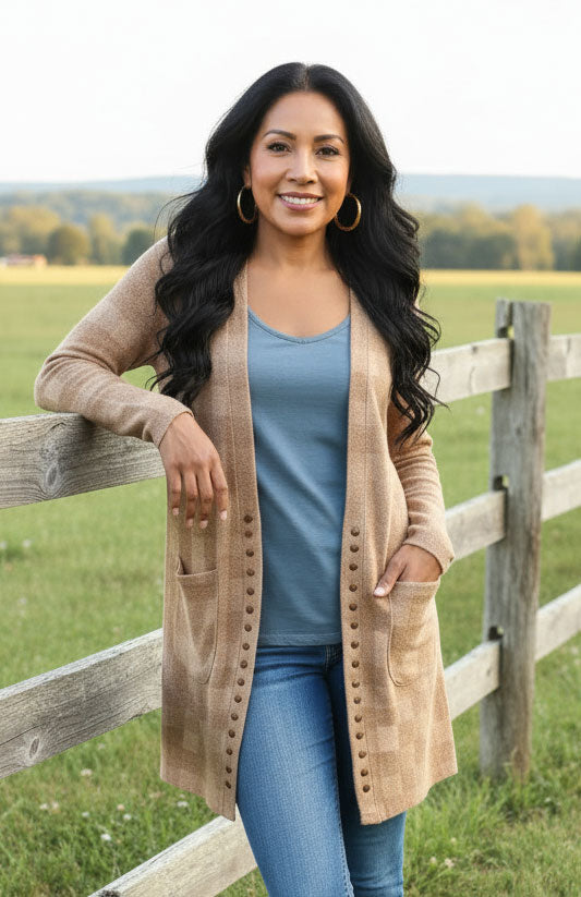 A simple, yet fashionable layering piece, a reliable cardigan is an absolute must-have wardrobe staple! Our Grace Cardigan pattern is highly customizable and can be made with details like button closures and patch pockets.